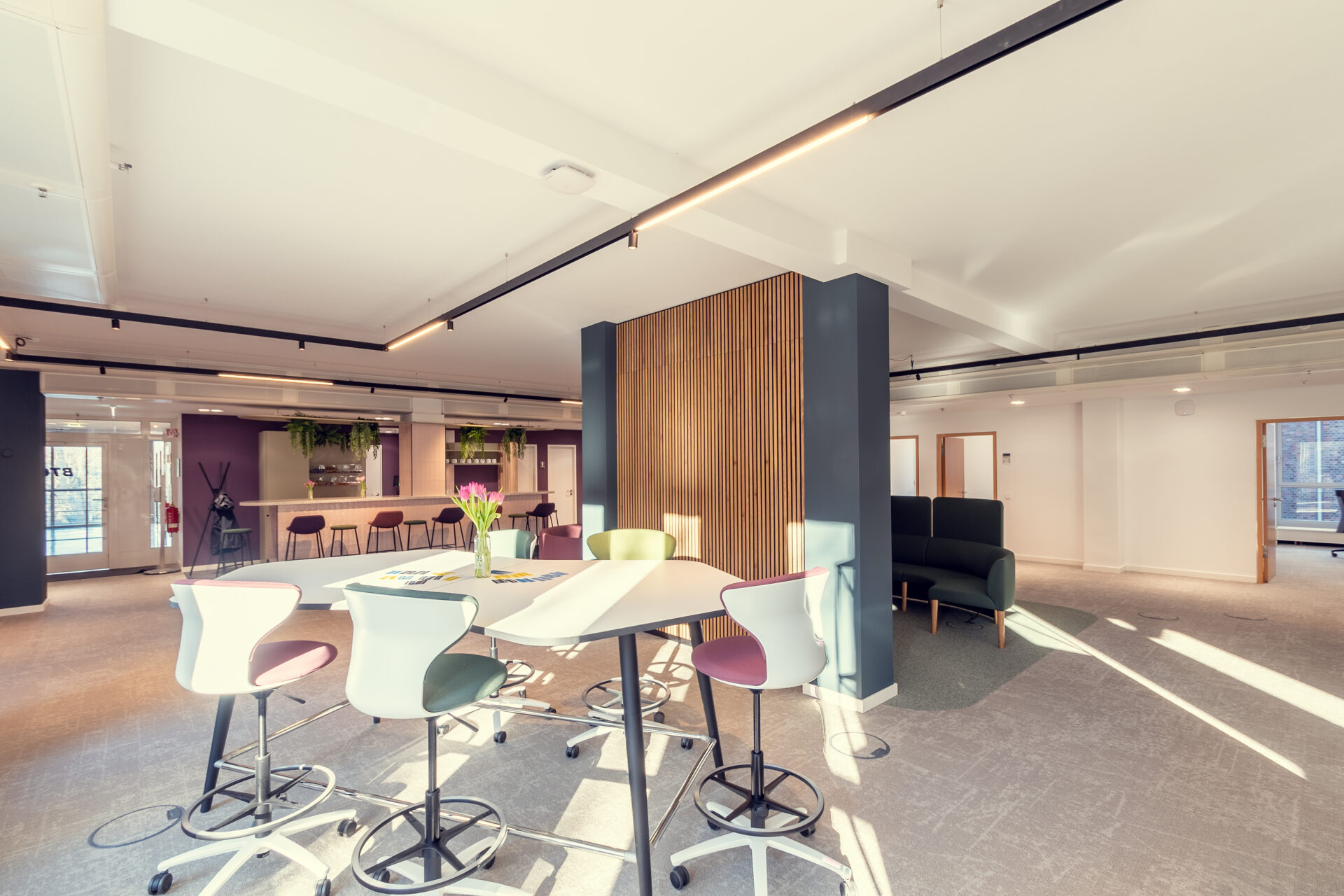 Am Standort Würzburg haben wir im Oktober 2022 einen Neubau bezogen, bei dem der “New Work“-Ansatz mit Freiheit, Selbstständigkeit und Teilhabe an der Gemeinschaft im Fokus stand. u003cbru003eDie Räumlichkeiten bieten alles für eine dialogreiche Zusammenkunft, Arbeiten im Team oder an Projekten, Austausch unter Kolleg:innen, aber auch Rückzug und Ruhe, wenn es im OpenSpace mal zu trubelig ist und die Fokusarbeit ruft.