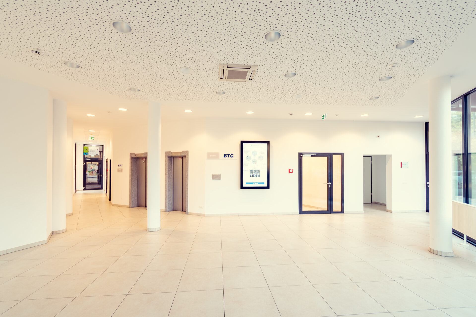 Die ehemalige Pro Consult-Geschäftsstelle ist seit 2007 Teil der BTC AG. Die gute Anbindung an die A1 oder zum Flughafen FMO sind nicht der einzige Punkt, durch den die Geschäftsstelle der Münsteraner:innen Fahrradstadt glänzt. Auch die moderne Ausstattung, bspw. durch den Kreativraum mit Microsoft Surface Hub sowie die Betreuung der kompletten System- und Infrastrukturlandschaft (BTC LAB), machen die Geschäftsstelle interessant. Neben dem beruflichen kommt hier auch der private Spaß nicht zu kurz. Die ca. 140 Mitarbeitende veranstalten u. a. jährlich ein internes Sommerfest. Darüber hinaus ist mit öffentlichen Verkehrsmitteln die Münsteraner:innen Altstadt oder auch der zentralgelegene Aasee gut zu erreichen.