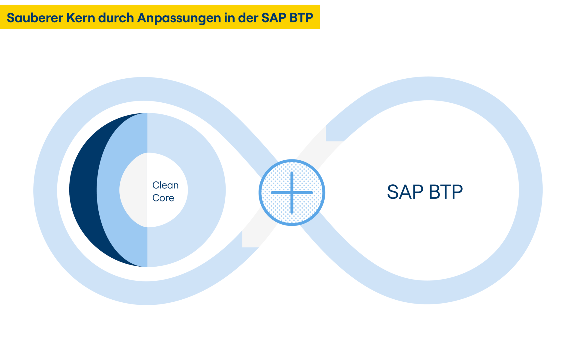 Der Clean Core Ansatz bezeichnet eine System-Architektur, bei der der SAP-Standard unverändert bleibt und kundenspezifische Anpassungen außerhalb des Kernsystems umgesetzt werden. Ziel des Ansatzes: