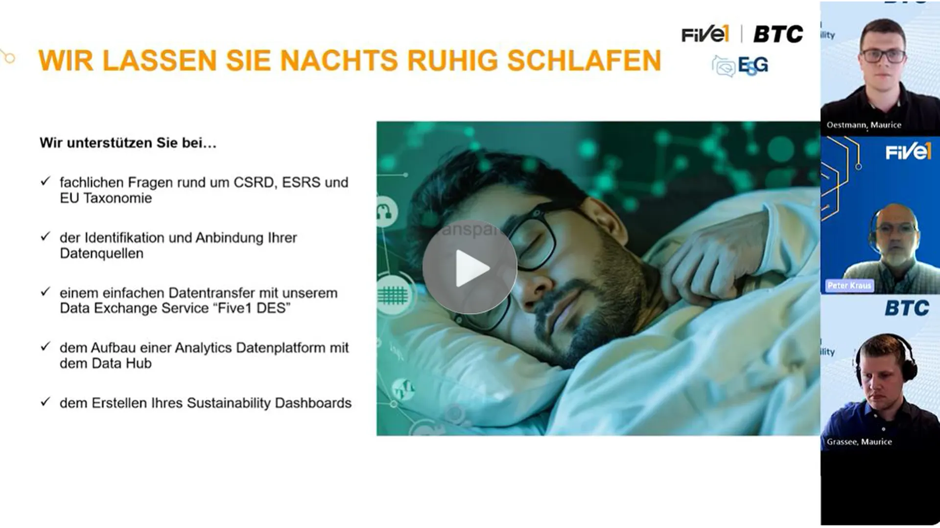 - Indem Sie ESG- und Finanzdaten auf derselben, auditierbaren Datenbasis verknüpfen, liefern Sie dem C-Level die Grundlage für nachhaltige und zugleich profitable Entscheidungen.
